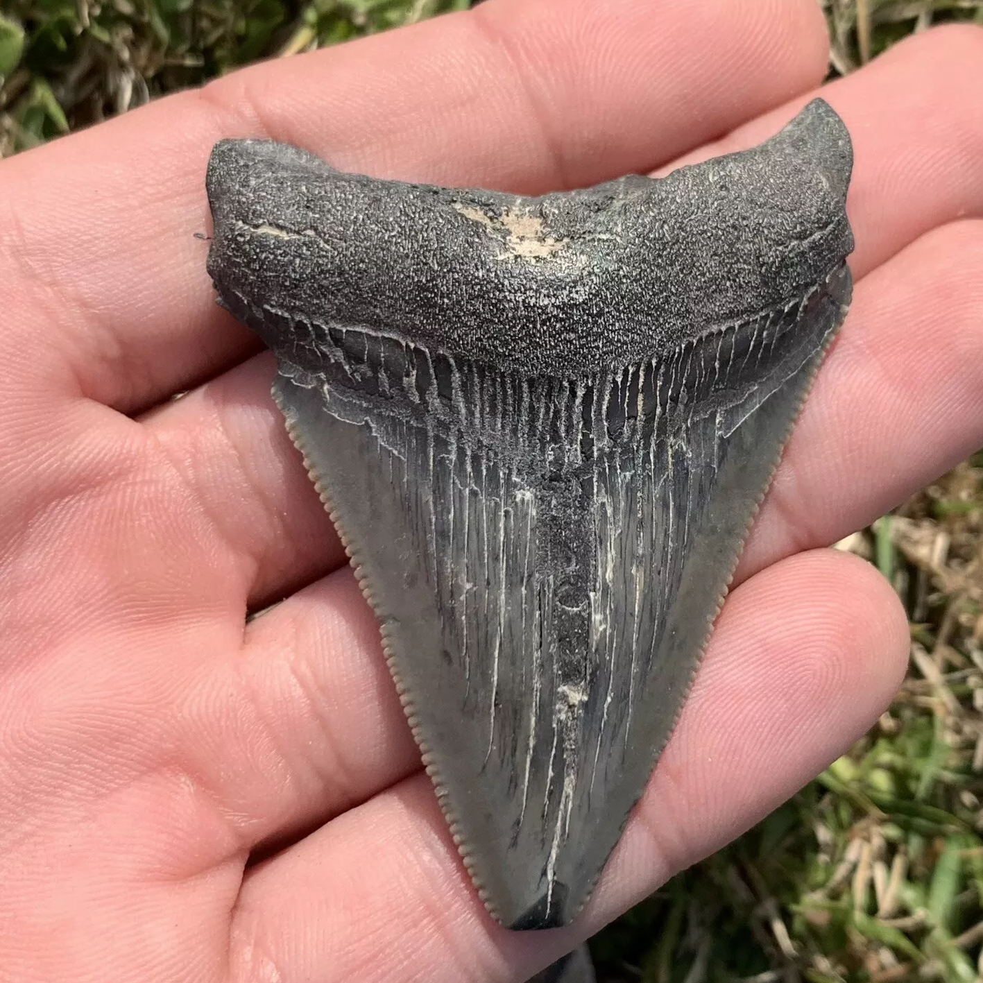 Otodus megalodon shark tooth collected from calvert cliffs Maryland
