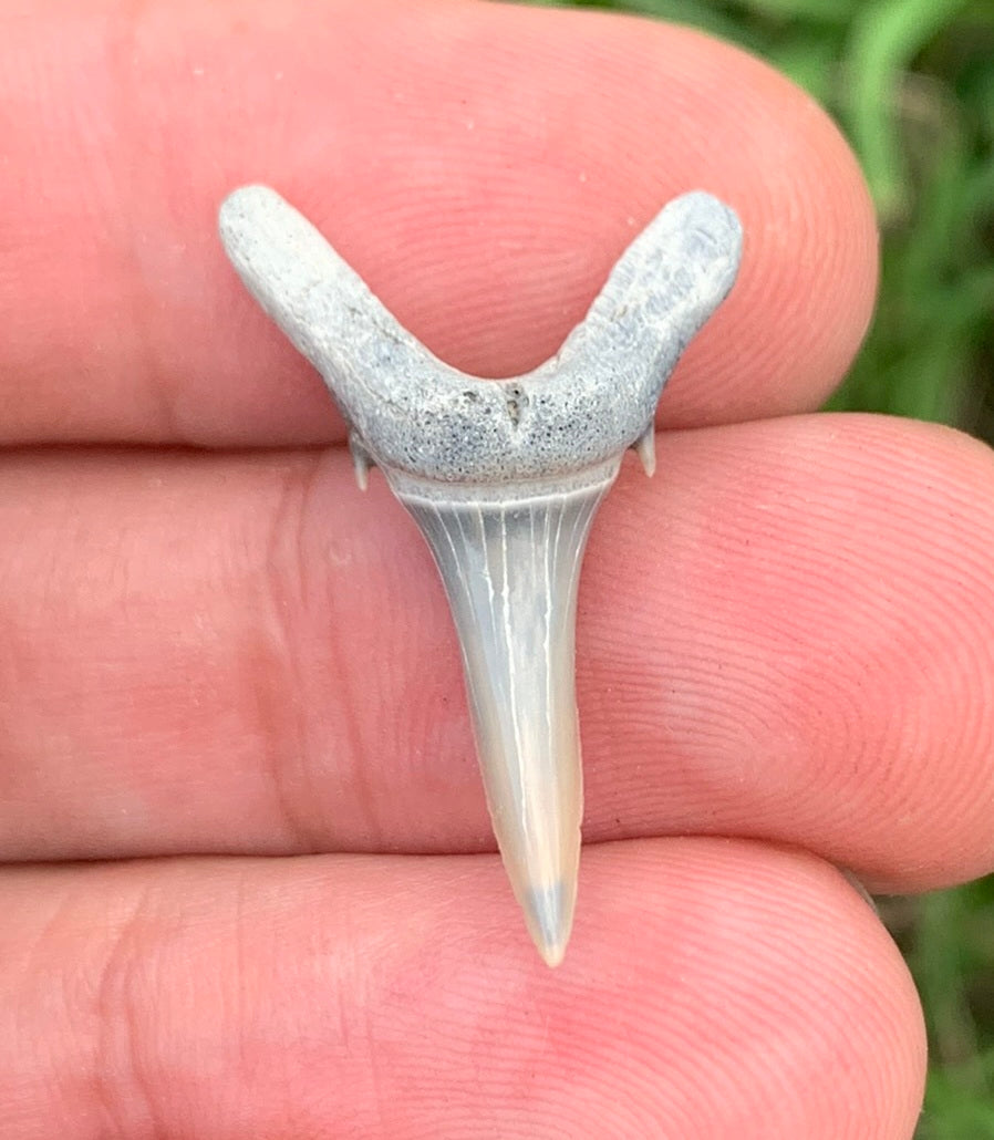 For sale we have a Carcharias cuspidata fossil sand shark tooth that was personally collected in the lee creek mine near Aurora North Carolina.