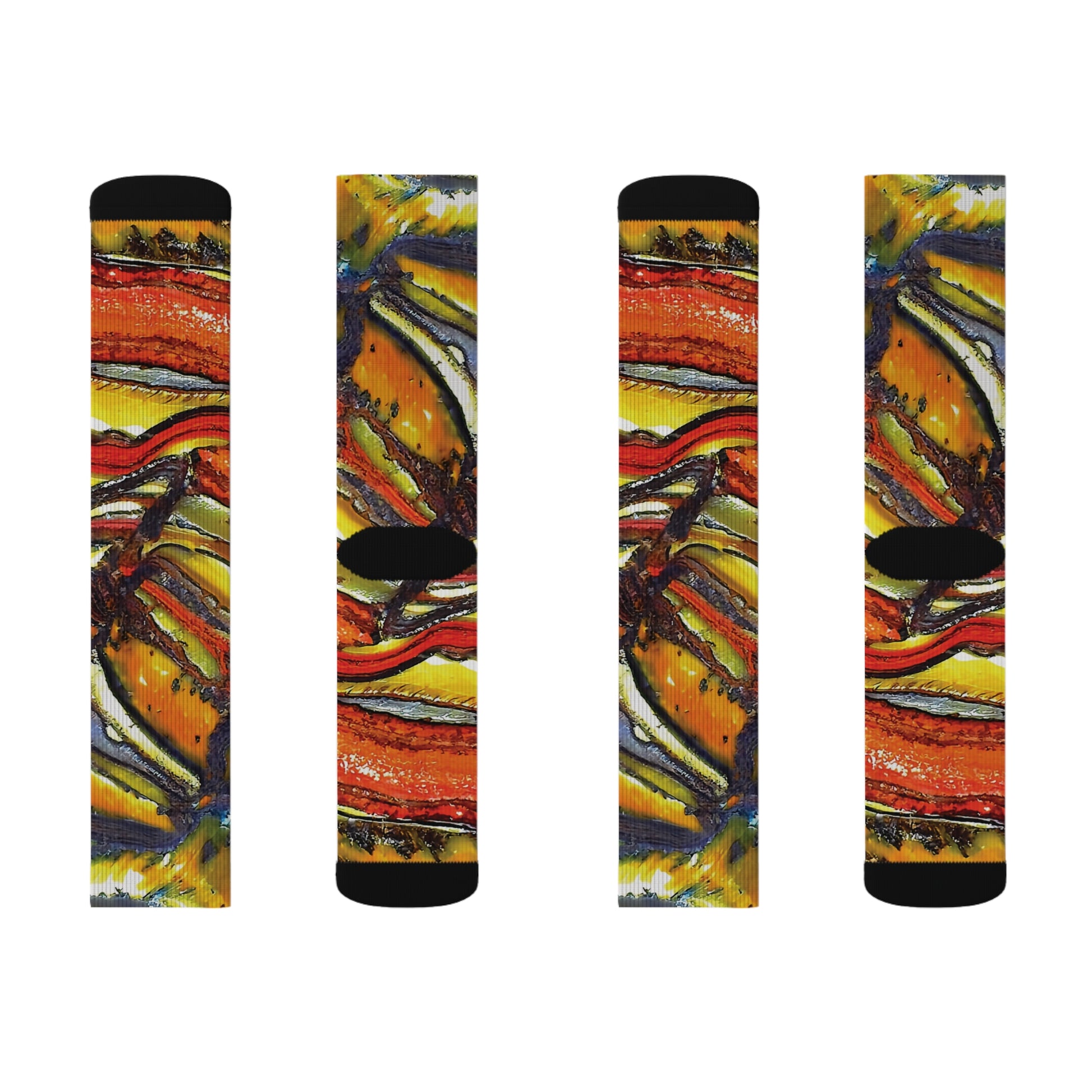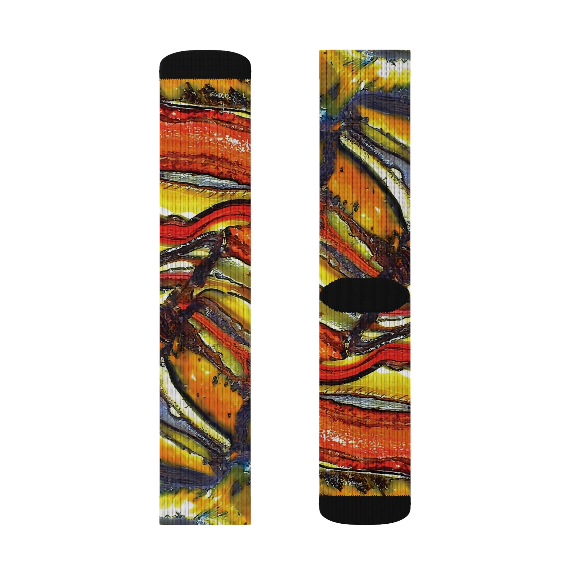 Discover our vibrant collection of colorful socks featuring stunning natural mineral desings similar to by tie-dye. This pair featuring some faulted and folded tiger iron. These unique patterned socks designed by nature, are perfect for adding a pop of color to any outfit. Crafted from soft, high-quality materials, our Rock Art socks offer both comfort and style. Whether you're looking for unique flair or trendy fashion socks, we've got you covered. Our socks are ideal for both men and women making them great gift socks for friends and family. Embrace creativity and sustainability with our comfortable and unqiue, colorful socks that brighten your day and elevate your wardrobe. Shop now to find your perfect pair!