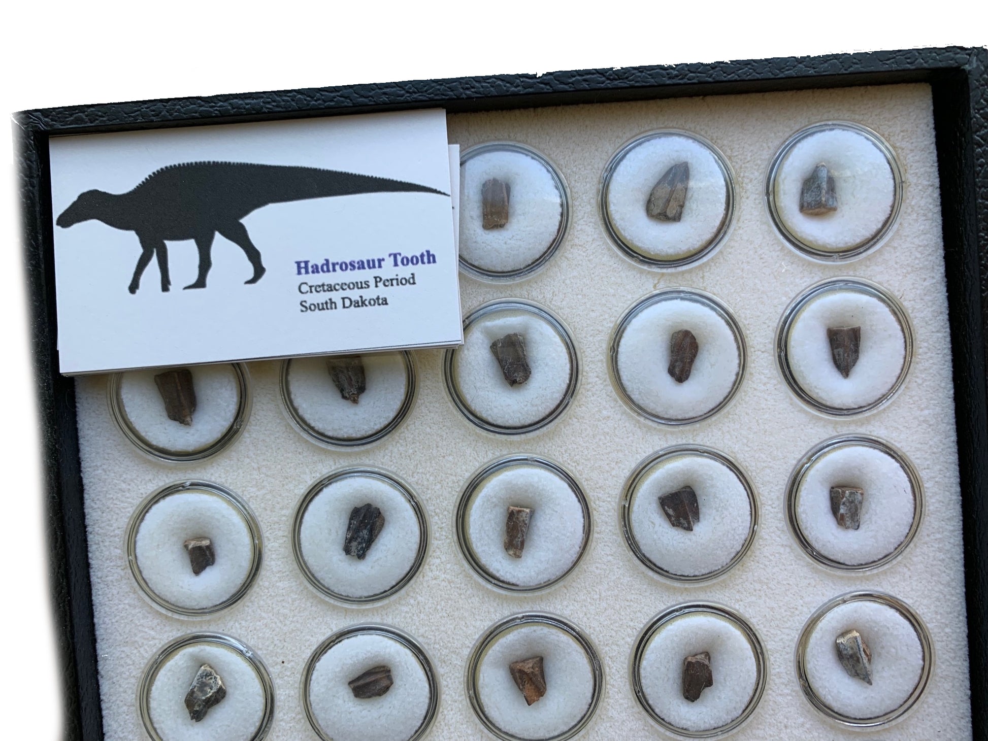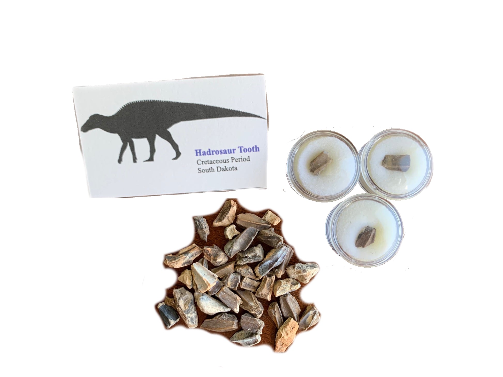 Each tooth will come with 1" gem jar for safe display and also includes a identification card. One tooth per purchase.